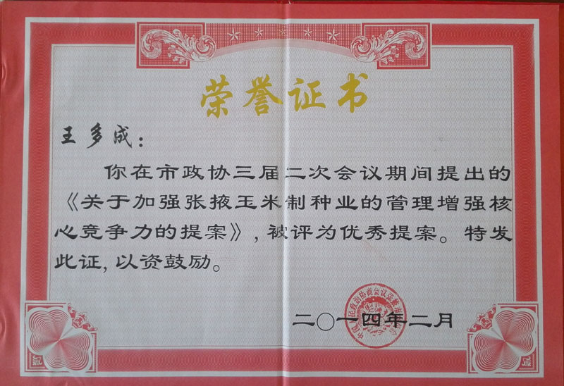 2014年榮獲張掖市政協三屆二次會…